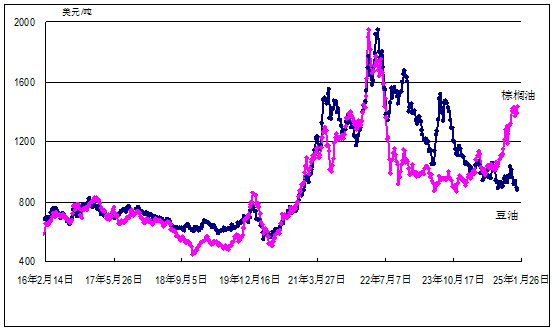國際糖料理事會原糖周均價每磅17.32美分(每噸382美元),環(huán)比跌3%,同比低25%;泰國100%B級和5%破碎率大米曼谷離岸周均價每噸分別為484美元和470美元,環(huán)比均跌2%,同比分別低29%和30%;美國芝加哥商品交易所豆油最近期貨合約收盤周均價每噸為994美元,環(huán)比跌1%,同比低5%。