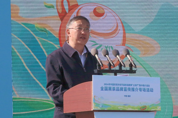 本網(wǎng)訊 11月7日,2024年中國農(nóng)民豐收節(jié)金秋消費季“土特產(chǎn)”集中推介活動全國黑茶品牌宣傳推介專場活動在浙江杭州臨安成功舉辦。活動由農(nóng)業(yè)農(nóng)村部信息中心主辦,云南省臨滄市人民政府、湖南省安化縣人民政府、四川省雅安市雨城區(qū)人民政府、陜西省咸陽市人民政府、湖北省赤壁市人民政府承辦。中國工程院院士、湖南師范大學校長劉仲華,農(nóng)業(yè)農(nóng)村部信息中心主任、黨委書記王小兵,云南省臨滄市委書記、市長杜建輝,中國農(nóng)業(yè)科學院茶葉研究所所長姜仁華,湖南省安化縣委副書記代虹宇,雅安市雨城區(qū)政協(xié)主席、藏茶產(chǎn)業(yè)發(fā)展工作領導小組組長張燕,陜西省咸陽市供銷合作社黨組書記、主任董忠文,湖北省赤壁市政府副市長彭勁松出席并作報告發(fā)言。